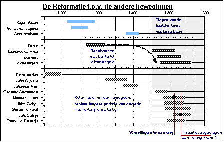 We kijken naar de volgende aspecten: Hieronder een overzicht van de Reformatie ten opzichte van de andere bewegingen: