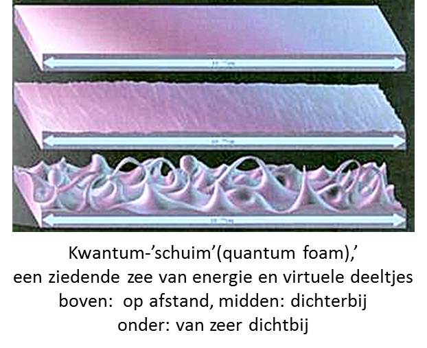 Ook dat wat wij ‘ma Het Zero Point Field nu vult het hele universum met een energie, bestaande uit elektromagnetische golven van alle golflengten (en dus deeltjes met elke lading). Maar die deeltjes komen altijd voor in een zgn. ‘deeltjespaar”: één positief en één negatief geladen deeltje. Het ZPF is in geweldige beweging. Men spreekt wel van een ziedende zee van golven en deeltjes. Als door een of andere omstandigheid de waarde van die energie een drempel overschrijdt, dan wordt zij op die plek omgezet in de twee samenstellende deeltjes, één positief en één negatief geladen. Maar die annihileren elkaar vrijwel direct daarna en keren weer terug als energie. Vanwege het 'spookachtige' verschijnen en verdwijnen van die deeltjes heten ze 'virtuele deeltjes', eigenlijk: virtuele deeltjesparen. In de QED erkent men alleen virtuele deeltjesparen op het moment dat ze snel verschijnen en weer quasi in het niets verdwijnen en noemt dit 'kwantum onzekerheid'. Er bestaat geen fysieke oorzaak voor, en over het algemeen schrijft men dit toe aan 'kwantum wetten'. Maar het noemen van een wet als oorzaak is Spielerei. Een wet is geen oorzaak, alleen een beschrijving van geconstateerde verbanden tussen oorzaak en gevolg. Voor Einstein en vele andere onderzoekers was en is deze ‘kwantum’-verklaring echter te schamel.
