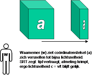 De Amerikaan Benjamin Franklin (1706-1790) deed vele elektrische proeven, benoemde de twee soorten elektriciteit als positief en negatief en toonde aan dat bliksem een elektrisch verschijnsel is, door een vlieger op te laten in een onweersbui (1752, geen voorbeeld ter navolging!). De Deen Hans Christian Ørsted (1777-1851) nam in 1819 waar dat een magneetnaald beweegt als er een draad in de buurt is waardoor een elektrische stroom loopt. Eigenlijk is hij de uitvinder van het elektromagnetisme. Michael Faraday (1791-1861), een Brits fysicus, heeft veel bijgedragen aan de kennis van elektrische en magnetische verschijnselen. Hij ontdekte in 1833 de wetten van de elektrolyse, en in 1831 ontdekte hij de magnetische inductie, die al eerder was gezien door Ørsted, en die de grondslag vormt voor alle omzetting van mechanische naar elektrische energie (dynamo, generator) en omgekeerd (elektromotor). Dan komt James Clerk Maxwell (1831-1879), ook een Brit. In 1873 verscheen van zijn hand het werk Electricity and magnetism, waarin hij Faraday’s ontdekking een solide wiskundige basis geeft. Verder kwam hij tot de conclusie dat ook licht een elektromagnetische golfbeweging is, zodat het ook de eigenschappen van andere golfbewegingen moet hebben. En zoals alle golfbewegingen (water, geluid) moet ook deze golfbeweging een medium hebben waarin het zich beweegt. Dat medium was uiteraard de al eerder genoemde ‘ether’. Maar wat voor spul was die ether dan wel? Want voor de verschillende soorten verschijnselen had men in eerste instantie ook verschillende soorten ‘ethers’ gedefinieerd. Maar in 1878 publiceert Maxwell een artikel over deze materie in de Encyclopaedia Britannica, waarin hij voorstelt, te komen tot één definitie van deze ‘ether’. Onderzoeken naar het atoom We zullen vergeten wat vroegere filosofen en onderzoekers over de materie en het atoom hebben beweerd en kiezen ons startpunt in de Leidse hoogleraar Hendrik Antoon Lorentz (1853-1928). Hij ontwikkelde de theorie over lichtbreking en –terugkaatsing (1875) en beschreef het kleinste elementaire stukje materie, het atoom. Hierin onderscheidde hij – kort gezegd – een kern, bestaande uit één of meer protonen, positief geladen deeltjes, en om die kern één of meer ‘schillen’ met elektronen, negatief geladen deeltjes, die met grote snelheid hun banen om die kern beschrijven. Ook vond hij dat er ‘vrije’ elektronen waren, die niet aan een atoom gebonden waren, en die de geleiding van elektriciteit mogelijk maakten. Verdere onderzoekingen, o.a. door Sir Joseph John Tomson (1852-1940) en Lord Ernest Rutherford (1871-1937) verfijnden dit model, totdat het in het atoommodel van Niels (Hendrik David) Bohr (1885-1962) een voorlopige afsluiting vond. Newton niet meer afdoende Newton’s modellen en vergelijkingen deden velen denken dat het einde van de natuurkunde in zicht was. En inderdaad vierde Newton’s denkwerk de ene triomf na de andere. De ontdekking van de nieuwe planeten Uranus (door William Herschel in 1781) en Neptunus (1846 door J.G. Galle op aanwijzingen van de Fransman Leverrier), waren gebaseerd op rekenwerk met Newton’s model. Zelfs Albert Michelson, die we straks tegenkomen bij de beroemde ethermetingen, heeft eens gezegd, dat het enige werk dat nog was overgebleven in de natuurkunde, het invullen van decimalen en het beschrijven van enkele uithoeken van de natuurkunde was. Maar hij kon niet vermoeden welke revolutie nog tijdens zijn leven zou plaatsvinden. Toch waren ook de uitvindingen van de elektriciteit en het magnetisme en het verband tussen die twee, en de onderzoekingen naar het atoom, niet helemaal zonder problemen in verband met Newton’s opvattingen. De uitkomsten van deze onderzoekingen deden steeds sterkere twijfels rijzen niet aan de juistheid, maar aan de universele toepasbaarheid van Newton’s model van het heelal. Zo was er onduidelijkheid over het medium waarin elektromagnetische golven zich voortplantten (de ‘ether’). Dat er zo’n medium moest zijn, stond vast. Ook als Newton’s wetten werden toegepast op de microwerelden van het atoom, bleken ze inadequaat. Hetzelfde gold voor het voorspellen van bewegingen met een snelheid die die van het licht naderde. Kennelijk was niet alles in het heelal eenvoudig en rechttoe-rechtaan. Welke richting zou de natuurkunde nu inslaan? De experimenten van Michelson en Morley Nu Maxwell had aangegeven dat er slechts één ‘ether’ moest zijn, werd het zaak om deze te gaan aantonen en onderzoeken. In 1887 bouwden Albert Michelson en Edward Morley (1838-1923) een instrument – interferometer – om deze metingen te gaan doen. Want als er een medium bestond, dan ging de aarde daar doorheen in zijn tocht om de zon en tijdens zijn dagelijkse omwenteling, en dus moesten er dan verschillen in de snelheid van het licht worden gemeten, die met deze bewegingen door de ‘ether’ samenhingen. Michelson en Morley deden 36 metingen met hun interferometer, op 8, 9, 11 en 12 juli 1887, maar het resultaat was mager[1]). Zij vonden een uitkomst die slechts 2,5% was van wat ze verwacht hadden. Hoewel het dus een resultaat was met een zekere consistentie, zij het dunnetjes, was de teleurstelling van alle betrokkenen groot, en men besliste dat de verschillen volledig lagen binnen de tolerantie van de gebruikte apparatuur. Daarom wordt het vrijwel overal voorgesteld alsof het resultaat nul was. Plannen tot verdere experimenten met betere apparatuur en op andere plaatsen en tijden (seizoenen!) werden nooit uitgevoerd. Kennelijk was de belangstelling ervoor verdwenen, of waren de resultaten te ontmoedigend. Lorentz en de ‘Lorentz transformaties’ De magere uitkomsten van het Michelson-Morley experiment zetten verschillende denkers aan het werk. Wat was er aan de hand? In 1899 publiceerde de Ierse fysicus George FitzGerald in Science het artikel “De ether en de aardse atmosfeer” waarin hij opmerkte dat de magere resultaten van het M-M experiment alleen te 